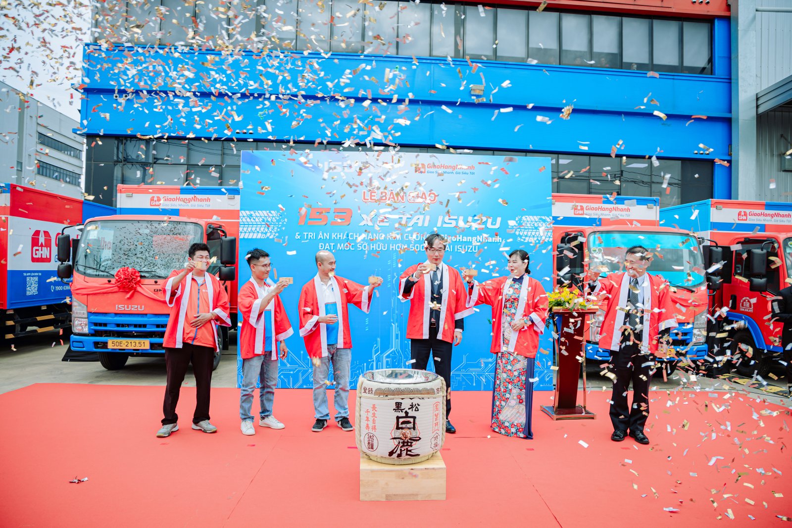 Handover Ceremony of 153 ISUZU Trucks to GHN, with the participation of ISUZU Vietnam’s Board of Management, GHN, and ISUZU Greenka Dealer